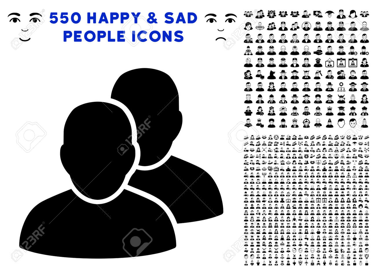 Vettoriale Icona Utenti Con 550 Immagini Di Uomini Tristi E Felici Bonus Lo Stile Di Illustrazione Vettoriale E Simboli Iconici Neri Piatti Image 94421332