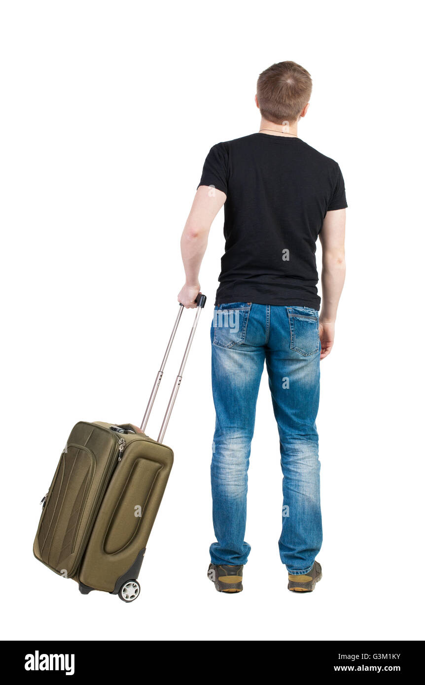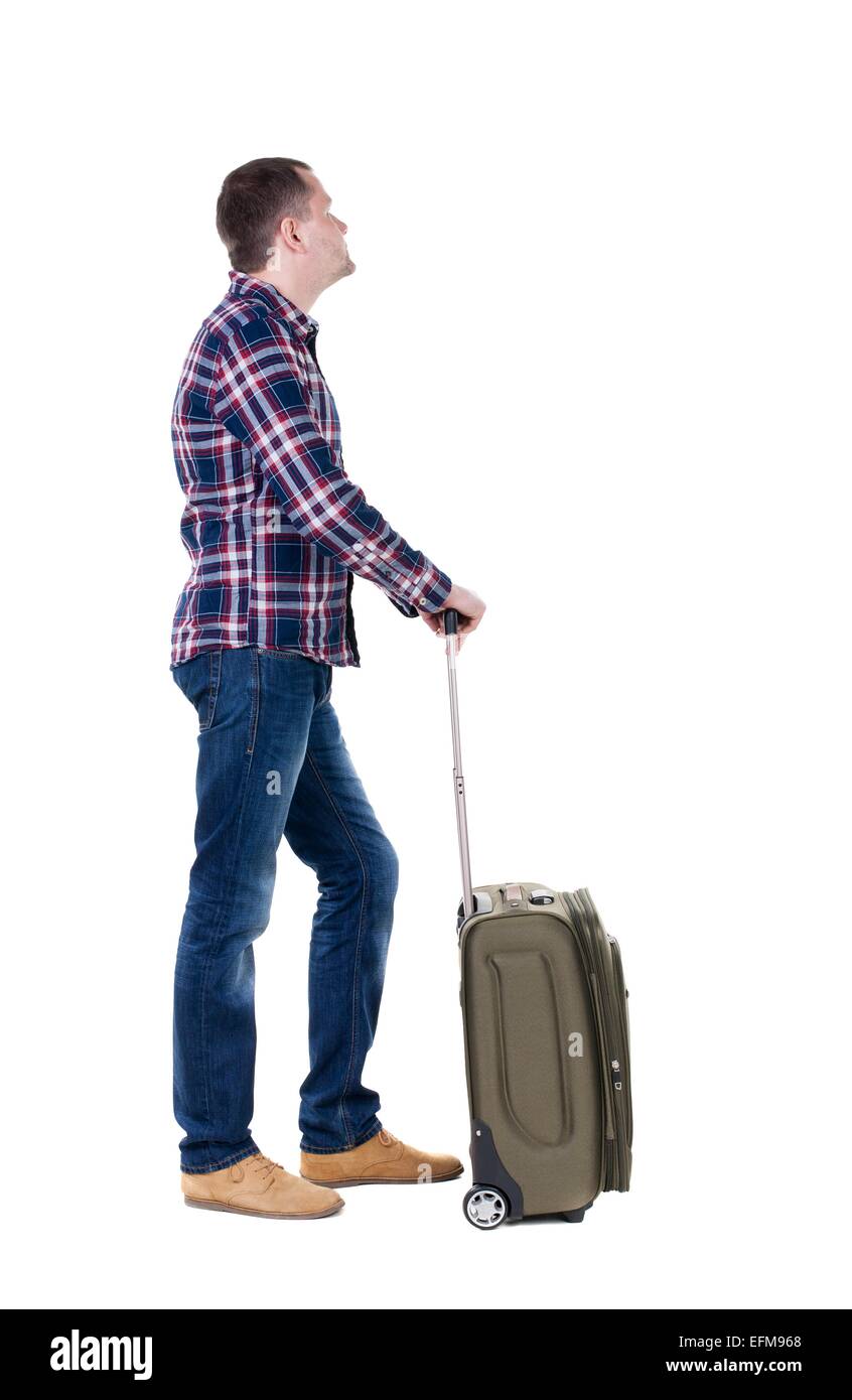 Vista Posteriore Dell Uomo Con Valigia Verde Guardando Verso L Alto Vista Posteriore Di Raccolta Persone Vista Posteriore Di Persona Isolato Su Sfondo Bianco Foto Stock Alamy