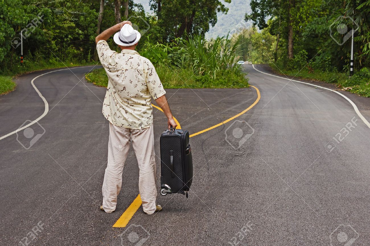 Immagini Stock Un Uomo Con Una Valigia E Su Un Bivio Image 29934441