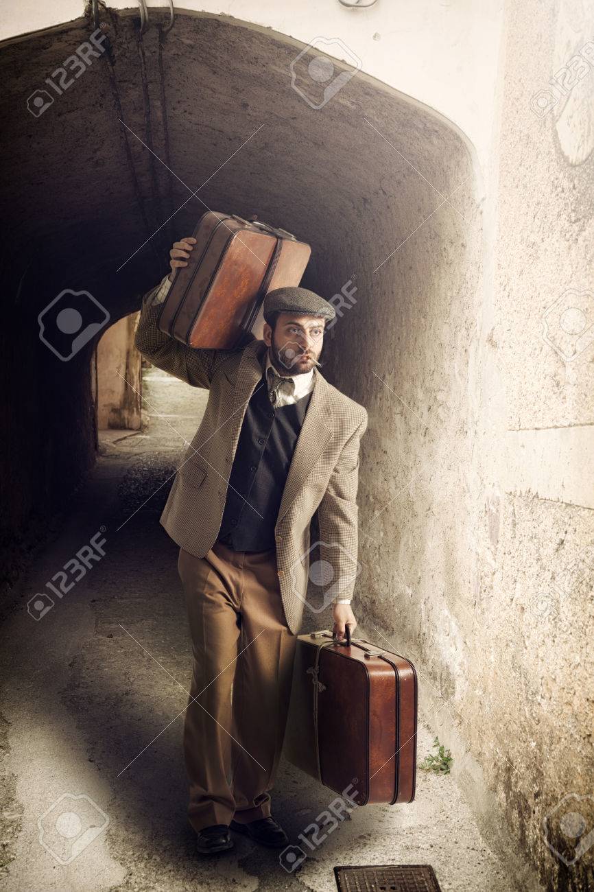 Immagini Stock Emigrante Uomo Con Le Valigie In Una Piccola Citta Image 39895998