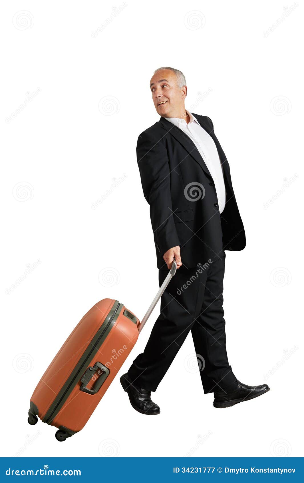 Immagini Stock Vista Posteriore Di Uomo Di Mezza Eta D Affari A Piedi Con Valigia Isolato Su Sfondo Bianco Image 64523358