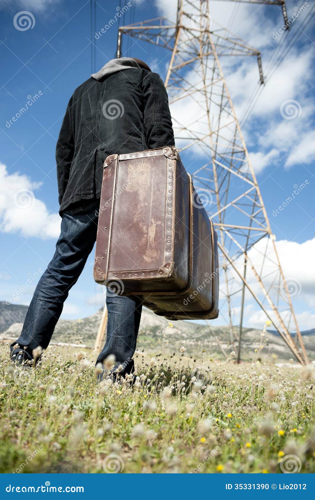 Uomo Con La Valigia In Un Campo Fotografia Stock Immagine Di Background Businessmen 35331390