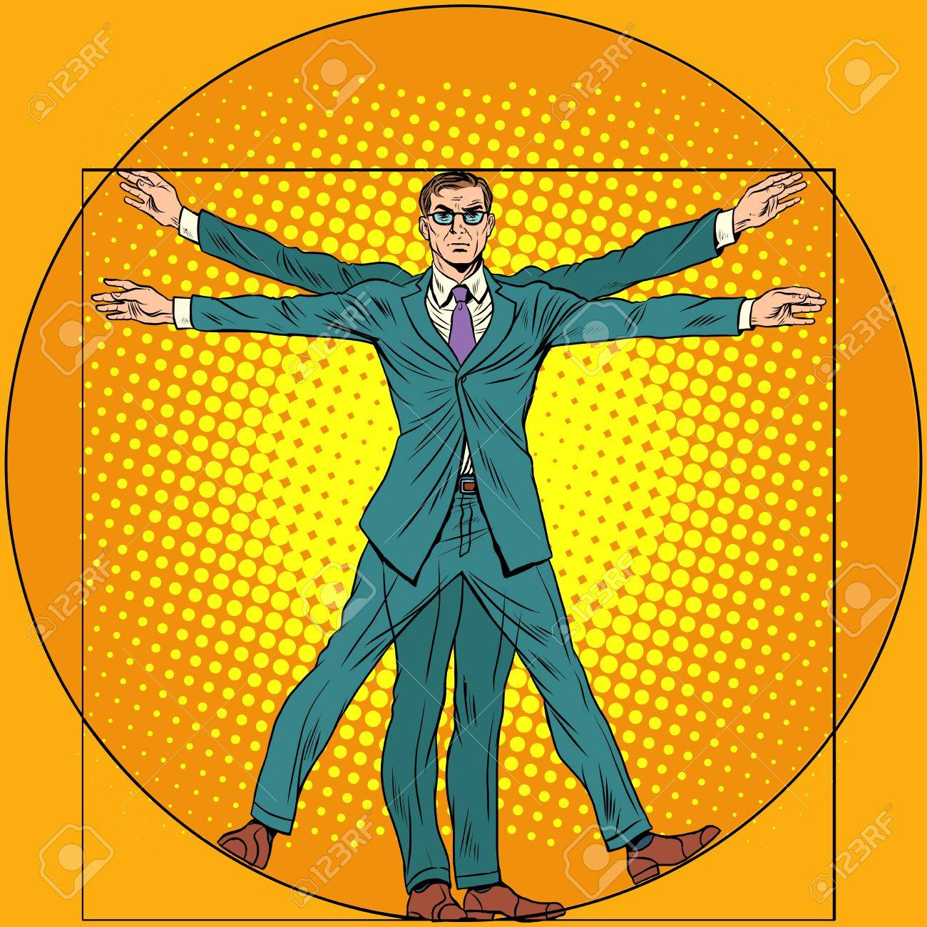 Vettoriale Un Uomo D Affari Nello Stile Di Uomo Vitruviano Pop Art Stile Retro Homo Vitruviano Uomo Vitruviano Image 51904190