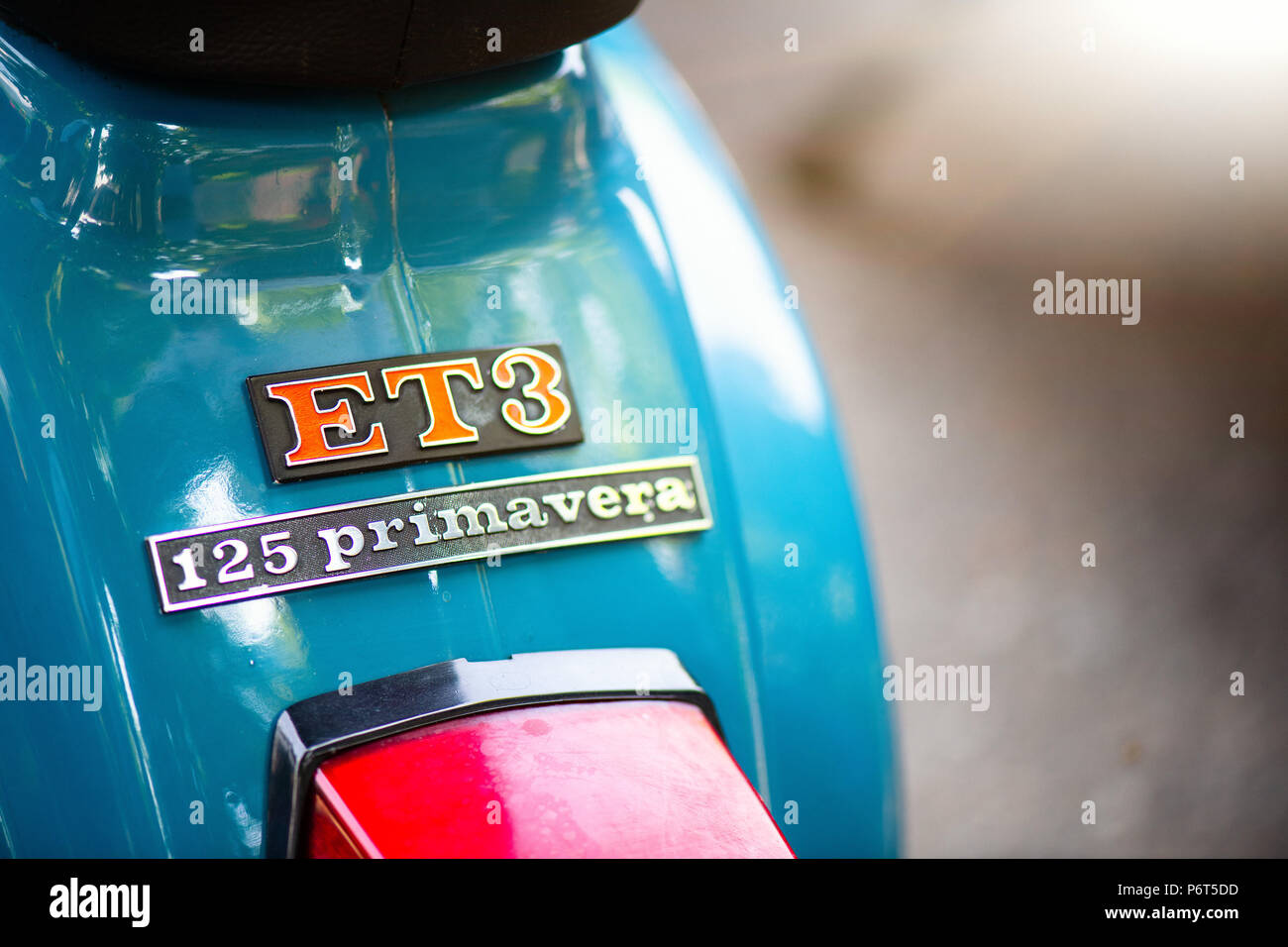 San Pellegrino Terme Italia 1 Luglio 2018 Vespa Moto Incontro Dettaglio Del Logo Vespa Et3 125 Primavera Foto Stock Alamy