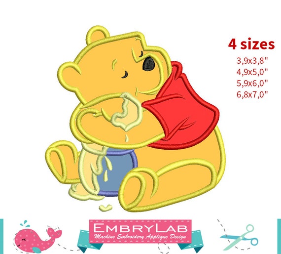 Applique Winnie The Pooh With Honey Machine Embroidery Etsy
