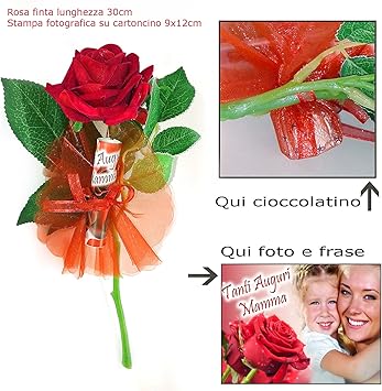 Idea Regalo Per La Festa Della Mamma Rosa Rossa Stampa Dedica Con Frase E Foto Cioccolatino Amazon It Giochi E Giocattoli