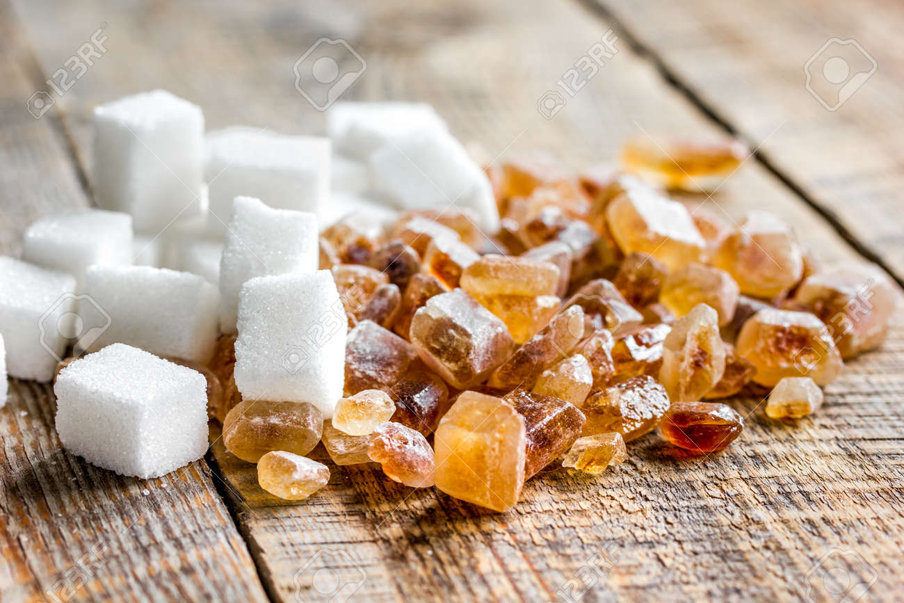 Immagini Stock Varieta Di Zollette Di Zucchero Sul Fondo Del Tavolo Da Cucina In Legno Image 79863787