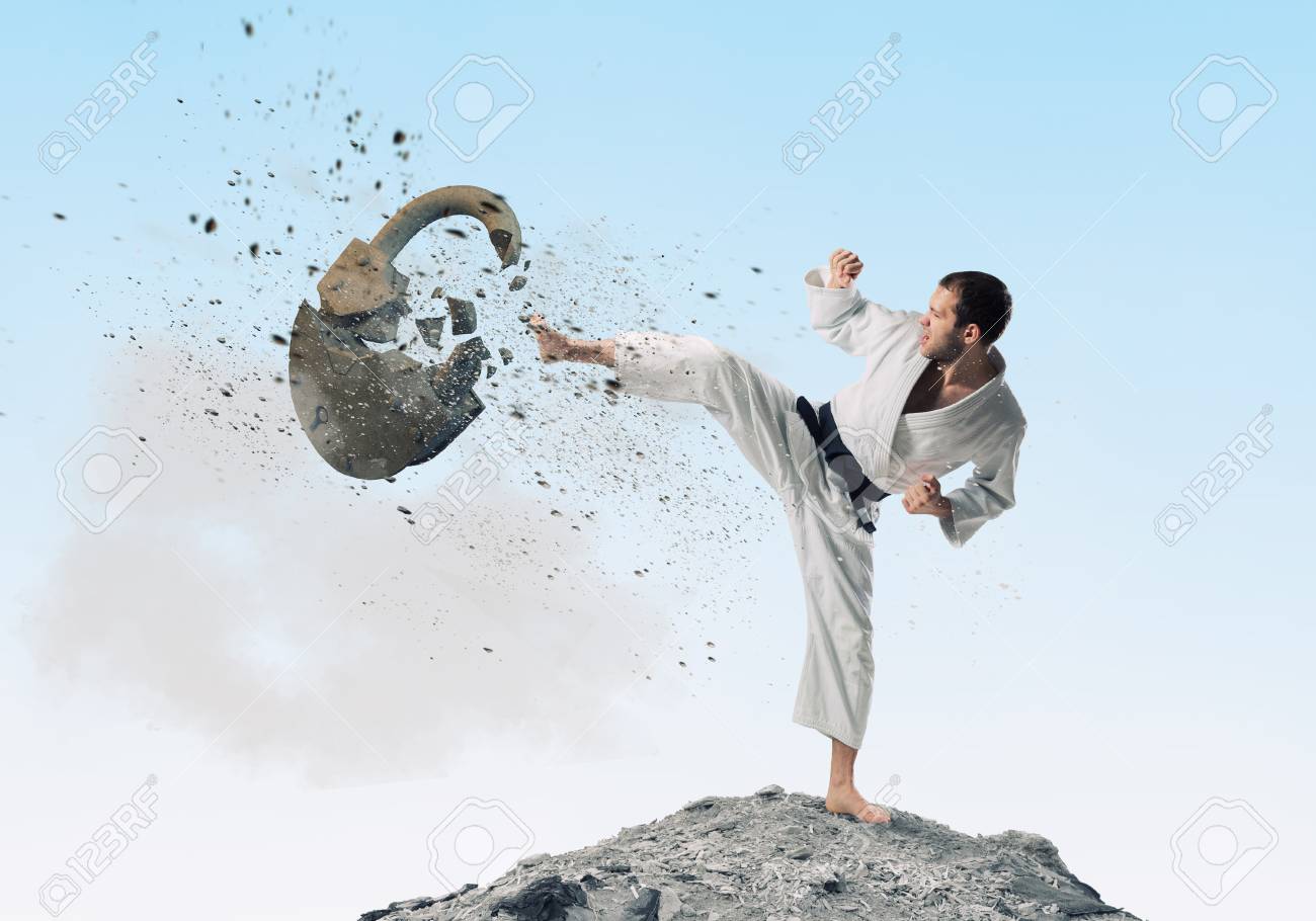 Karate Man In Jump Breaking Stone Lock Stock Photo Picture And Royalty Free Image Image 58144278