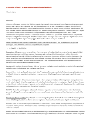 Esame Fografia Marra Unibo L Immagine Infedele Marra Doc Docsity