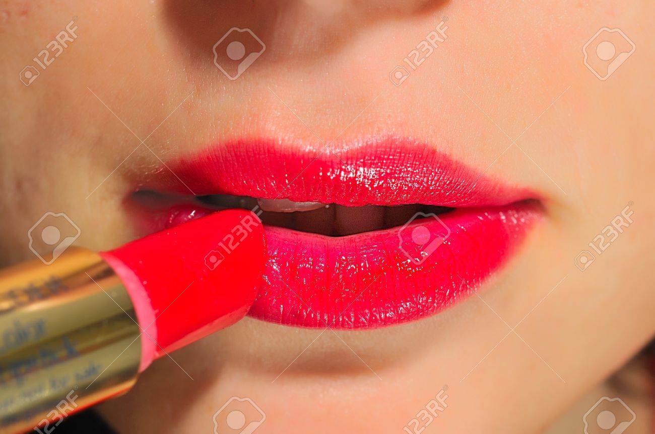 Immagini Stock La Modella Si E Messa Il Rossetto Alle Labbra E Le Ha Colorate Image 9384566