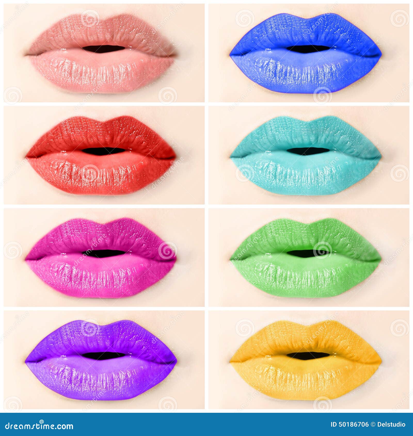 Collage Labbra Colorate Con Diverse Tonalita Foto Stock Modifica Ora 704287222