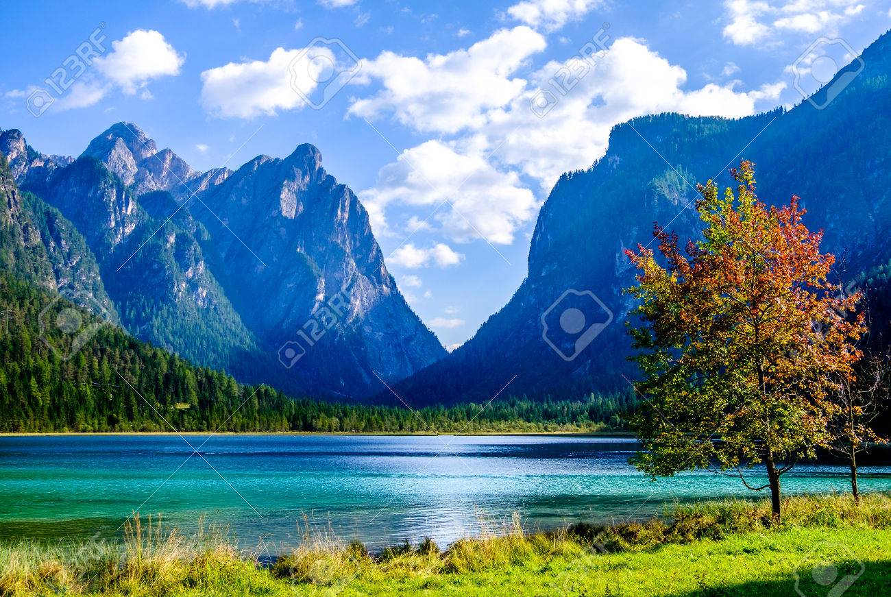Autumn At Lago Di Dobbiaco Toblacher See Dolomites Alps Stock Photo Picture And Royalty Free Image Image 35149107