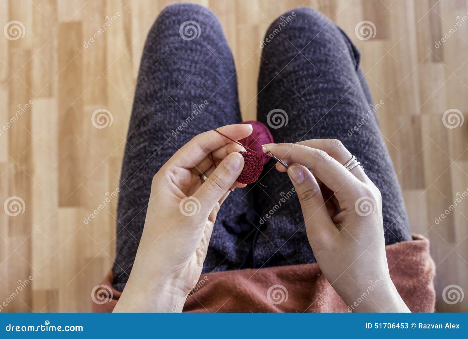 Lavoro All Uncinetto Della Ragazza Immagine Stock Immagine Di Vista Mani 51706453