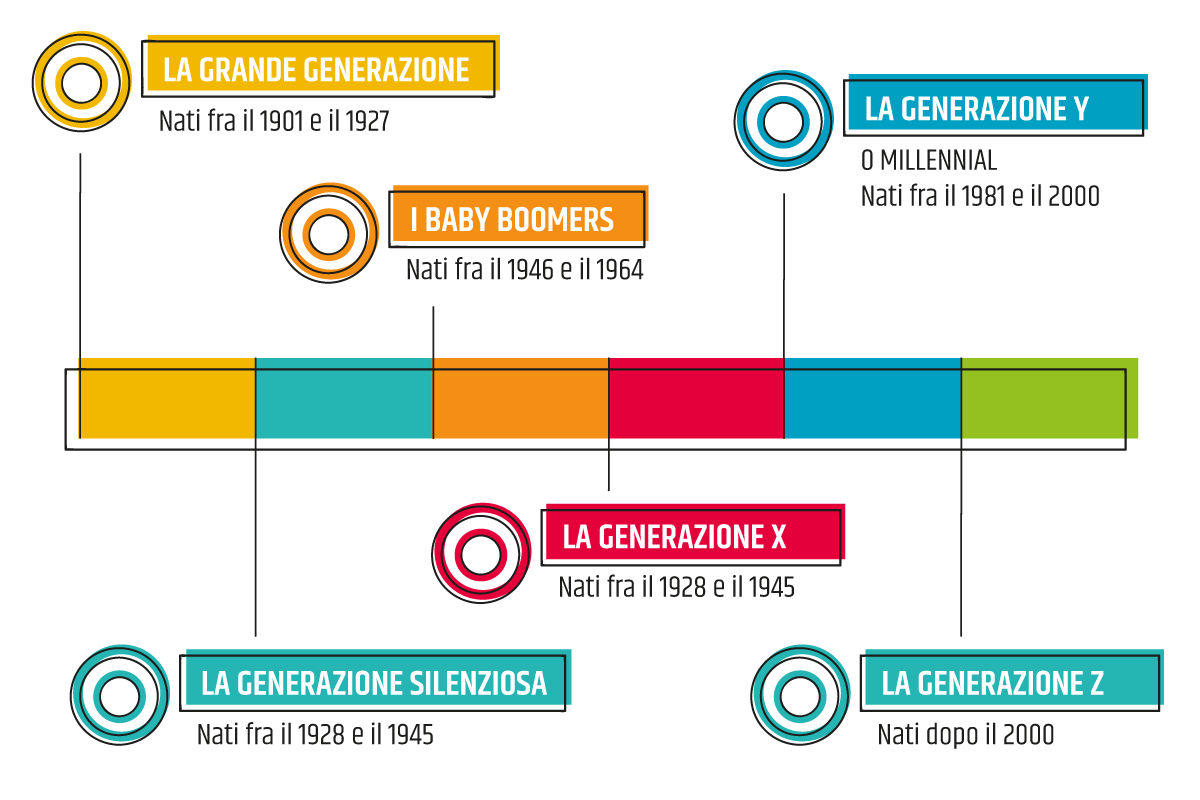 Quattro Generazioni Sulla Linea Del Tempo
