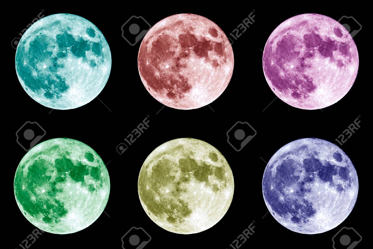 Immagini Stock Sei Colori Diversi Collage Della Luna Piena E Visto Isolato Su Uno Sfondo Nero Alto Contrasto Immagine Ad Alta Risoluzione Scattate Con Una Fotocamera Full Frame Dslr La Luna