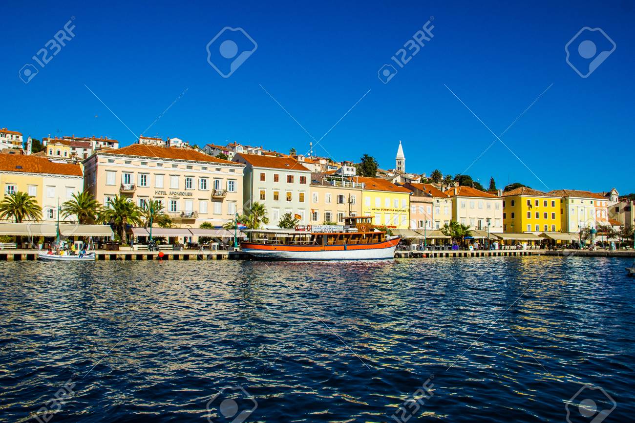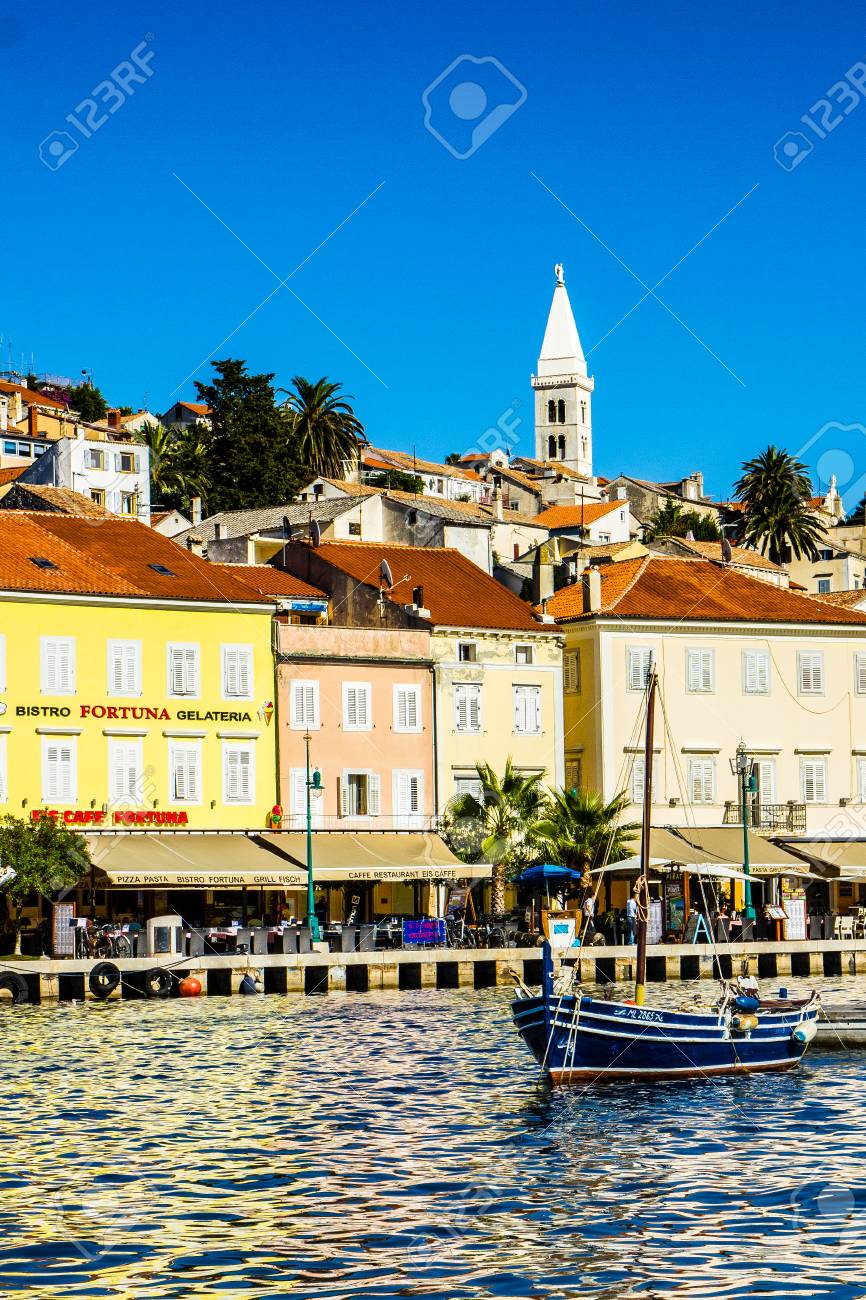 Immagini Stock Vista Sul Mare Citta Di Lussinpiccolo Isola Di Lussino Croazia Image 97411434