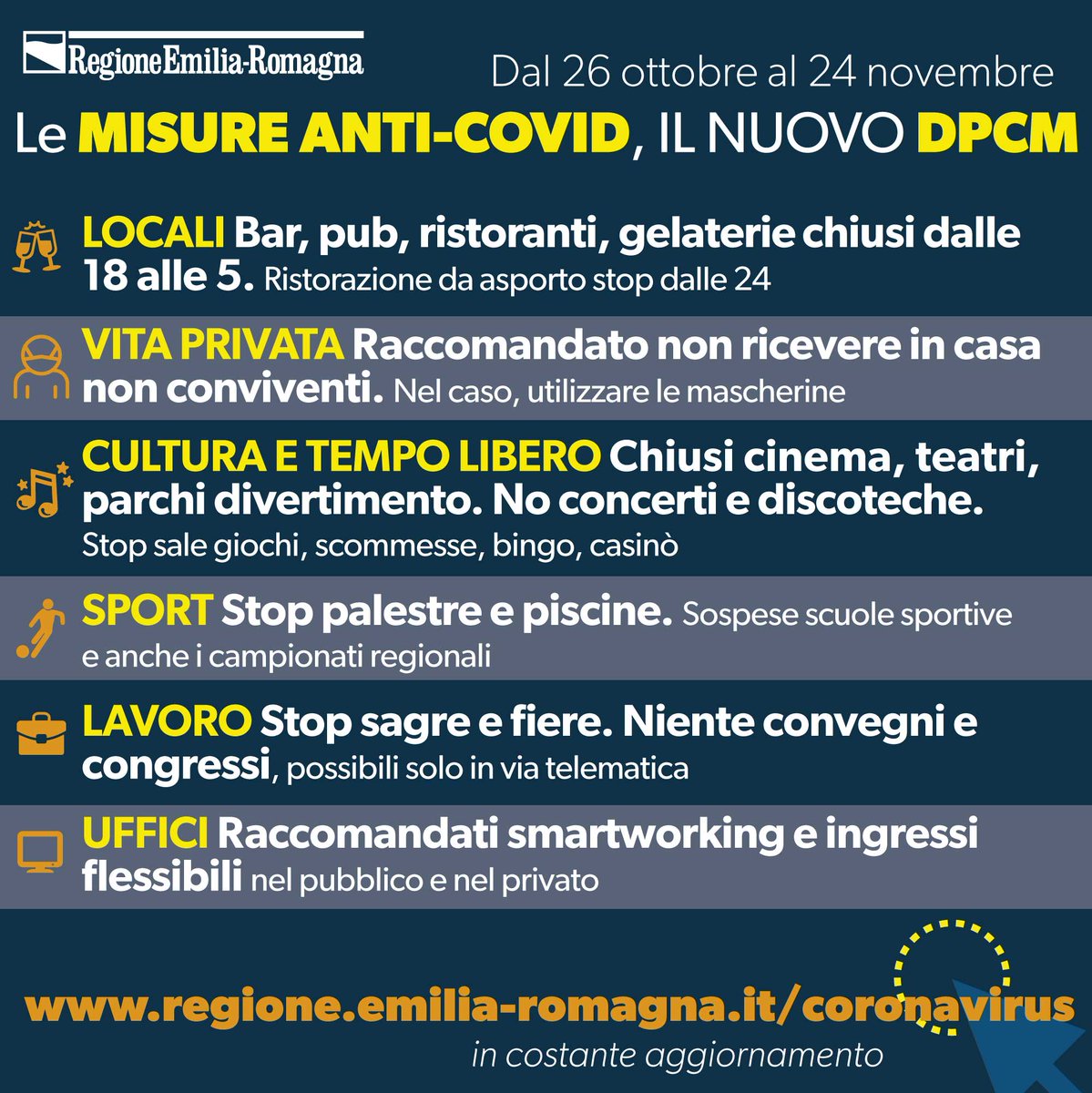 Regioneemiliaromagna On Twitter Coronavirus Le Principali Misure Previste Nel Nuovo Dpcm Del Governo Ll Sito Della Regioneer In Costante Aggiornamento Https T Co 5jbdyu7dro Https T Co Ooxrsviaox