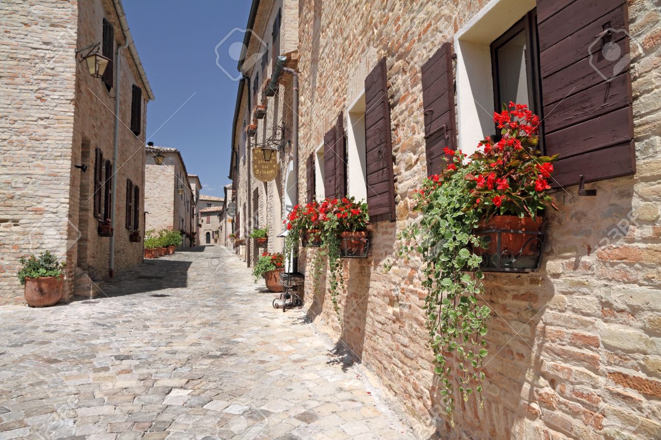 Narrow Paved Street In Village Montegridolfo In Province Of Rimini Stock Photo Picture And Royalty Free Image Image 14443282