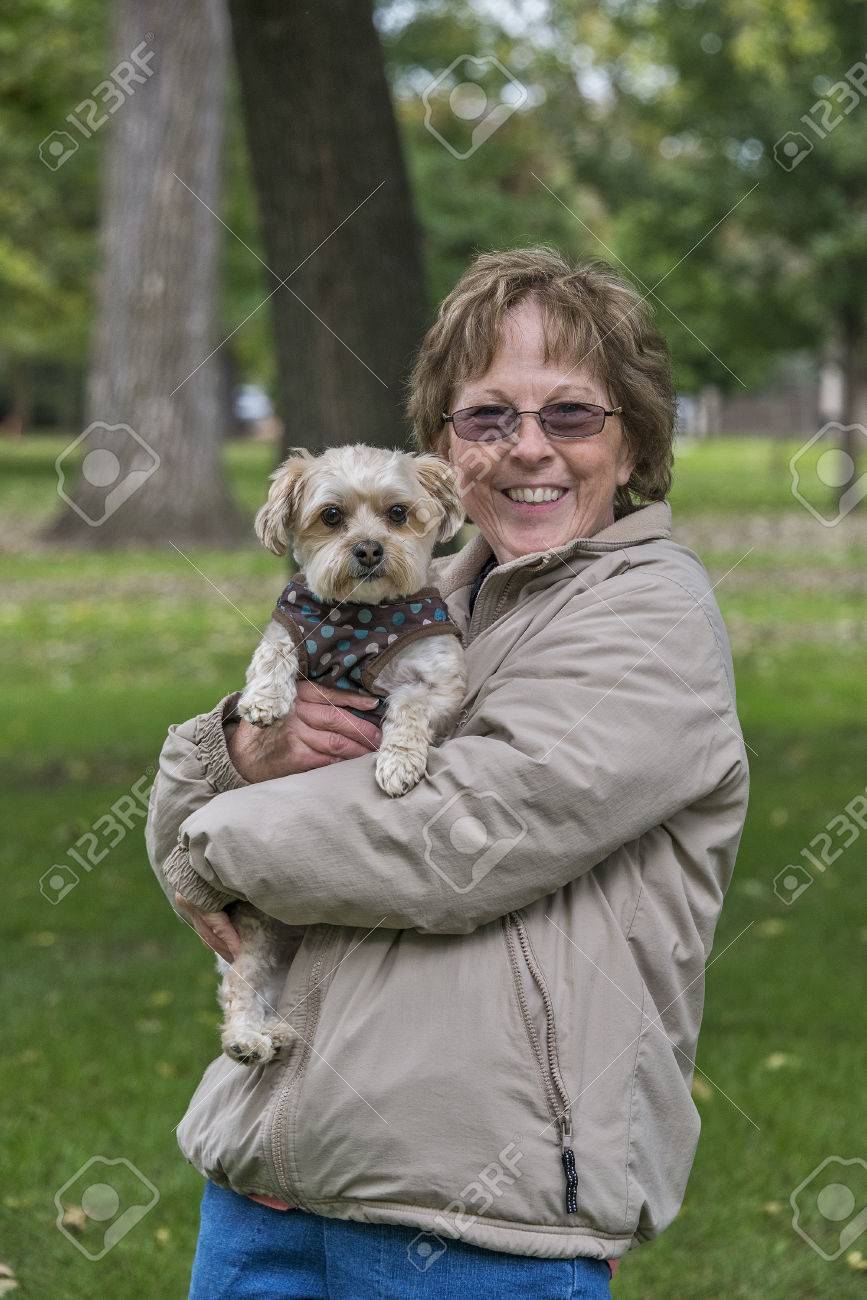 Immagini Stock Donna Di Eta Con Il Suo Morkie Cucciolo Image 25560768