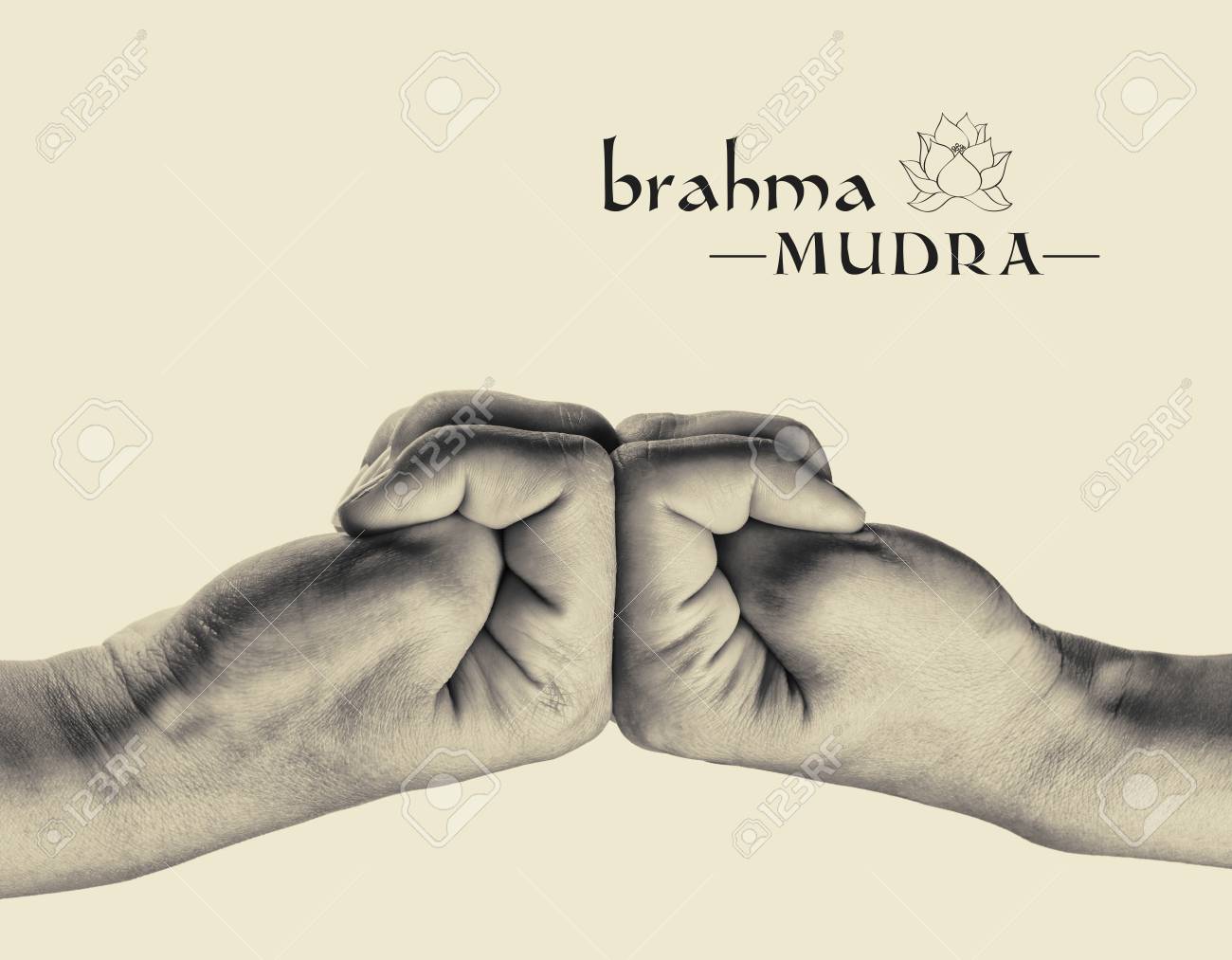 Immagini Stock Brahma Mudra Gesto Della Mano Yogica Isolato Su Priorita Bassa Modificata In Bianco E Nero Image 87954568
