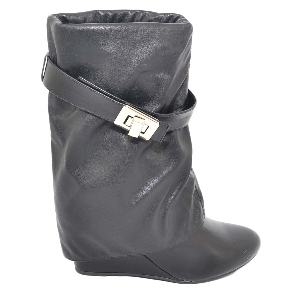 Stivaletto Donna Nero Con Zeppa Intera E Risvoltone Lungo In Pelle Meta Polpaccio Gancio Laterale Modello Shark Moda Donna Stivaletti Malu Shoes Malushoes