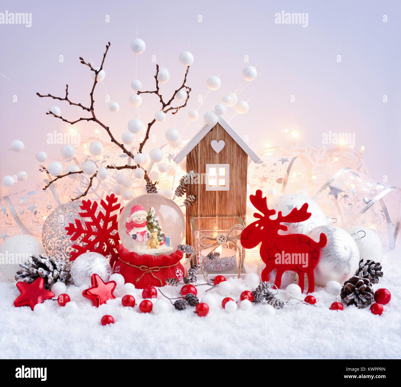 Baubles Di Natale Con La Lanterna Di Neve E Albero Concetto Di Sfondo Foto Stock Alamy
