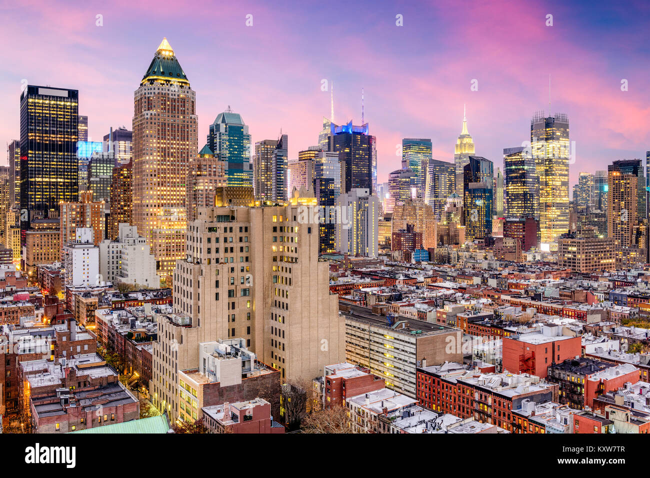 New York City Skyscrapers Illuminated At Night Ny American Stock Photo 186448164