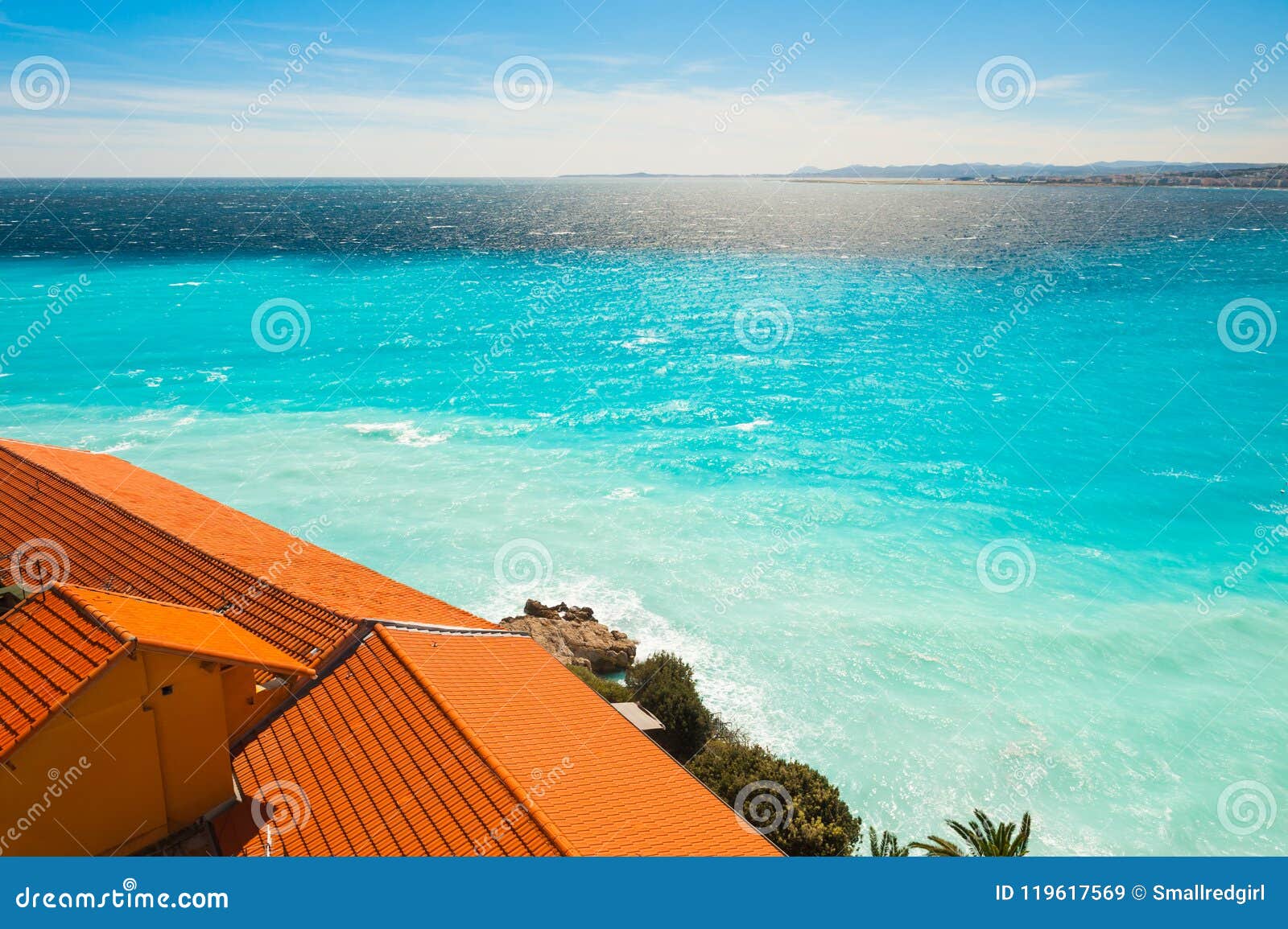 Bella Costa Di Mare In Nizza Francia Immagine Stock Immagine Di Orizzonte Architettura 119617569