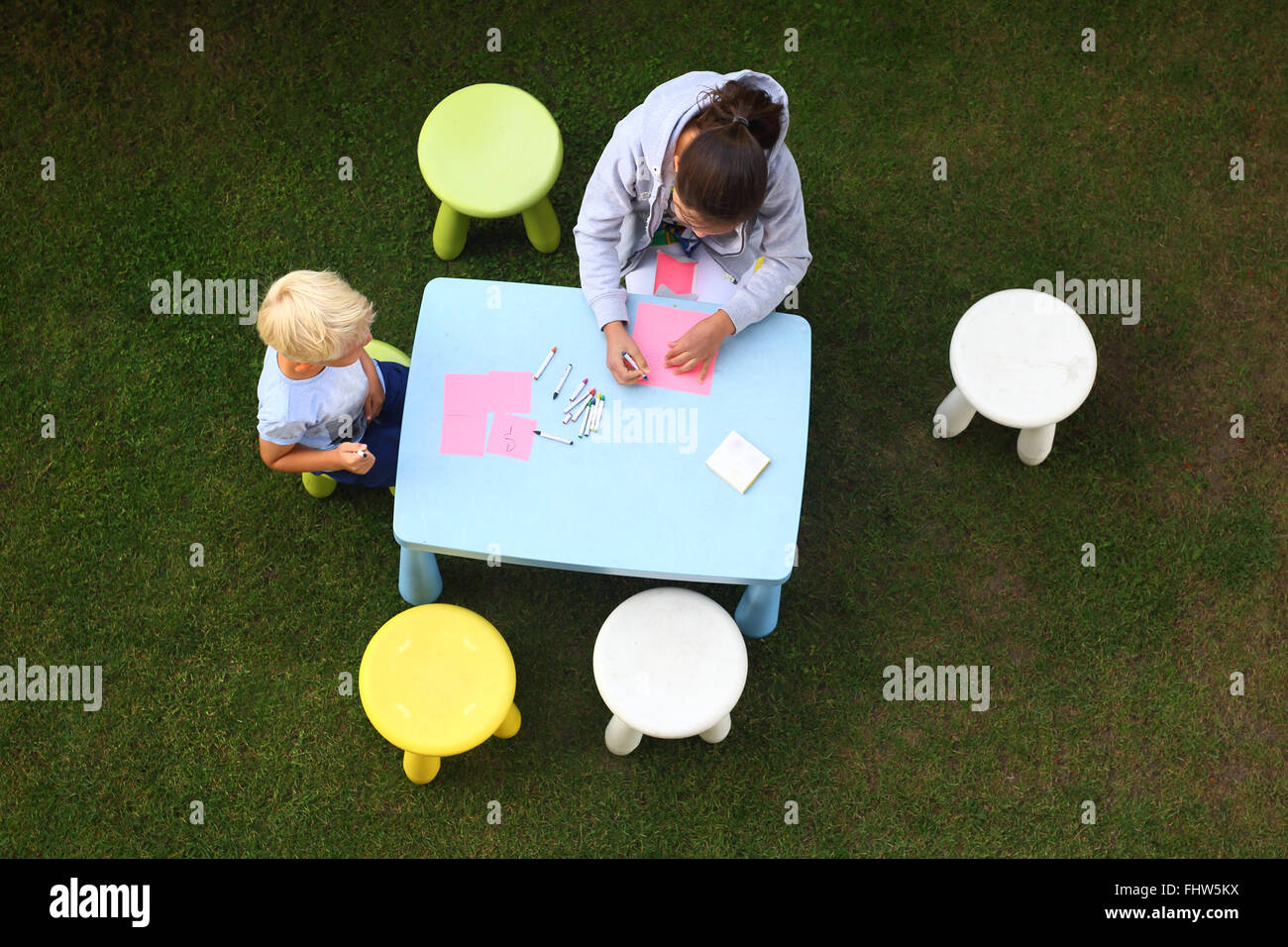 Divertenti Attivita All Aperto Divertimento Creativo Per La Noia I Bambini Giocano In Giardino Si Disegna Con Matite Colorate Foto Stock Alamy