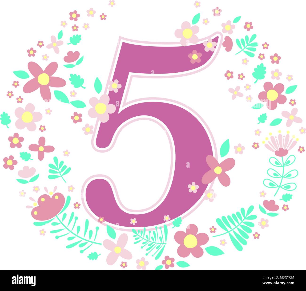 Numero 5 Con Fiori Decorativi Ed Elementi Di Design Isolato Su Sfondo Bianco Possono Essere Usati Per Bambina Nascita L Eta Compleanno Nursery Decorazione S Immagine E Vettoriale Alamy