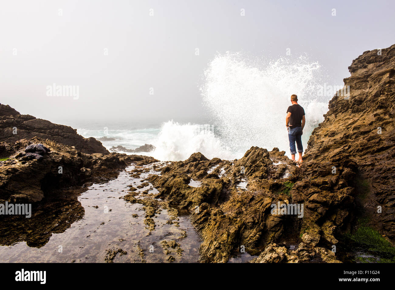 Possenti Onde Marine Che Si Infrangono Sulla Scogliera Costiera Foto Stock Alamy