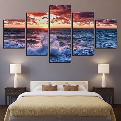 Gyss 5 Pannelli Quadri Su Tela Arte Murale Stampe Hd Poster 5 Pezzi Onde Marine Ondulate Immagini Di Paesaggi Marini Soggiorno Casatelaio Amazon It Casa E Cucina