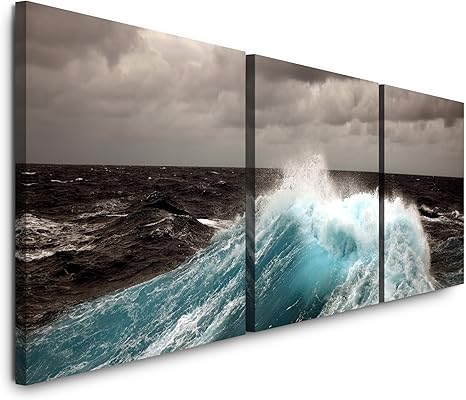 Sin Us 74 Immagine Da Parete Xxl Con Onde Marine Scure 150 X 50 Cm 3 Immagini Da 50 X 50 Cm Amazon It Casa E Cucina