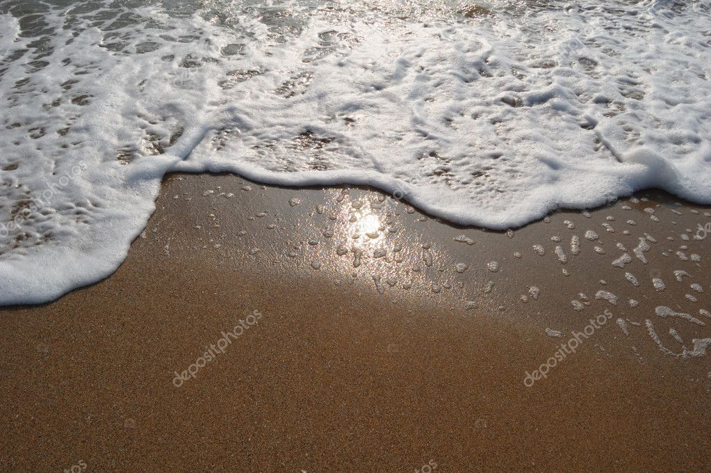 Onde Marine E Schiuma Bianca Sulla Spiaggia Di Sabbia Con Il Sole Riflettono Foto Stock Foto Immagini C T R O T Z 7535735 Depositphotos