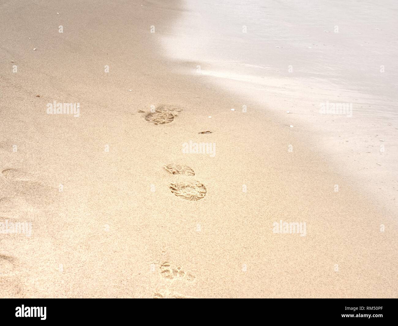 Orme Di A Piedi Nudi Sulla Sabbia Umida Della Spiaggia Dello Sfondo Della Foto Foto Stock Alamy