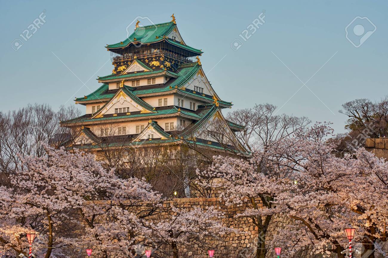 Immagini Stock Beautiful Osaka Castle With Blooming Cherry Blossoms In Sakura Spring Season In Osaka Japan Image 150129502