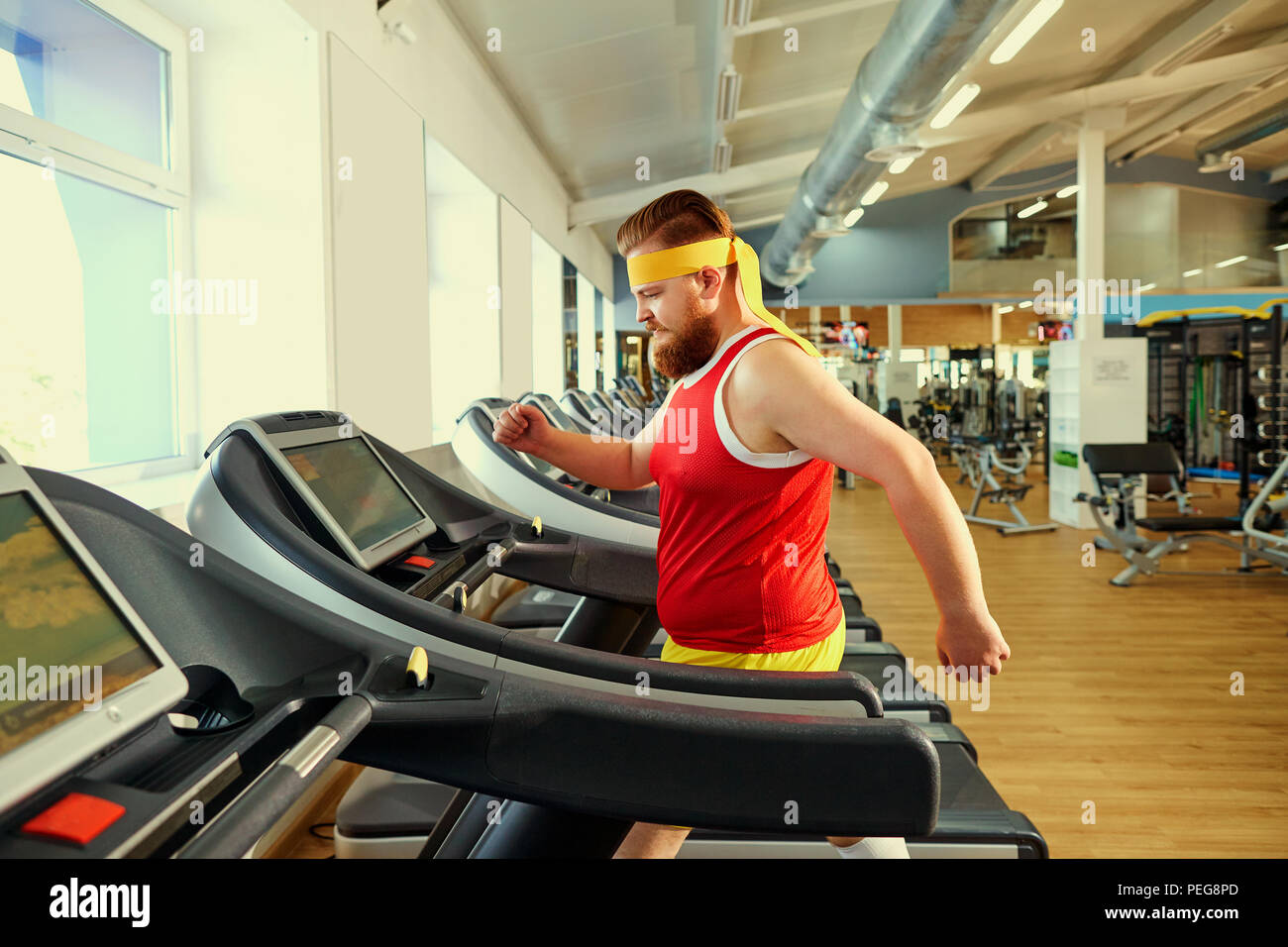 Un Divertente Uomo Grasso Facendo Esercizi In Palestra Foto Stock Alamy