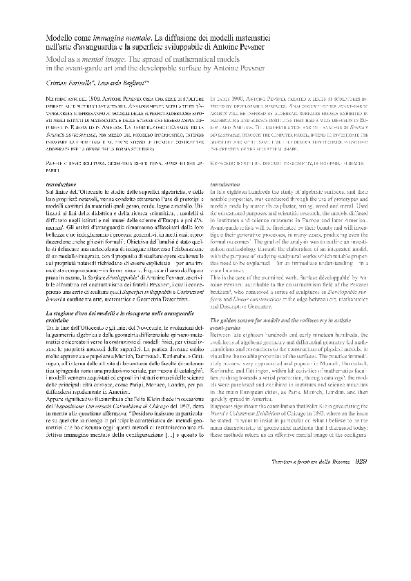 Pdf Model As A Mental Image The Spread Of Mathematical Models In The Avant Garde Art And The Developable Surface By Antoine Pevsner Cristian Farinella Academia Edu
