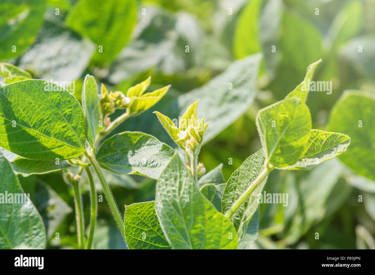 Giovani Pianta Di Soia Con Fiore Fioritura In Crescita I Semi Di Soia Foto Stock Alamy
