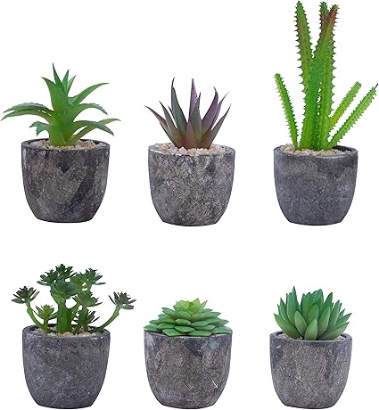Set Di 6 Mini Piante Finte Da Interno Piccole Piante Grasse Finte Verdi Con Vaso Grigio