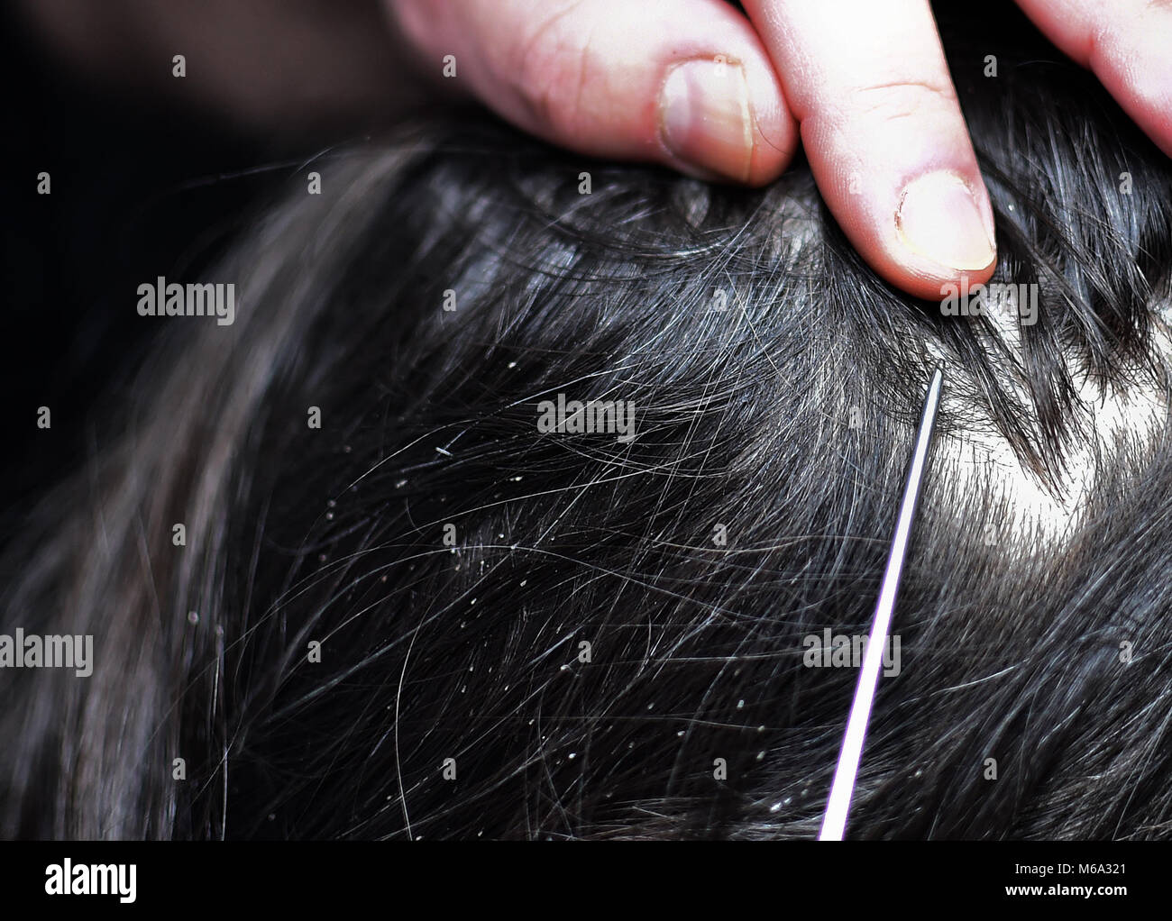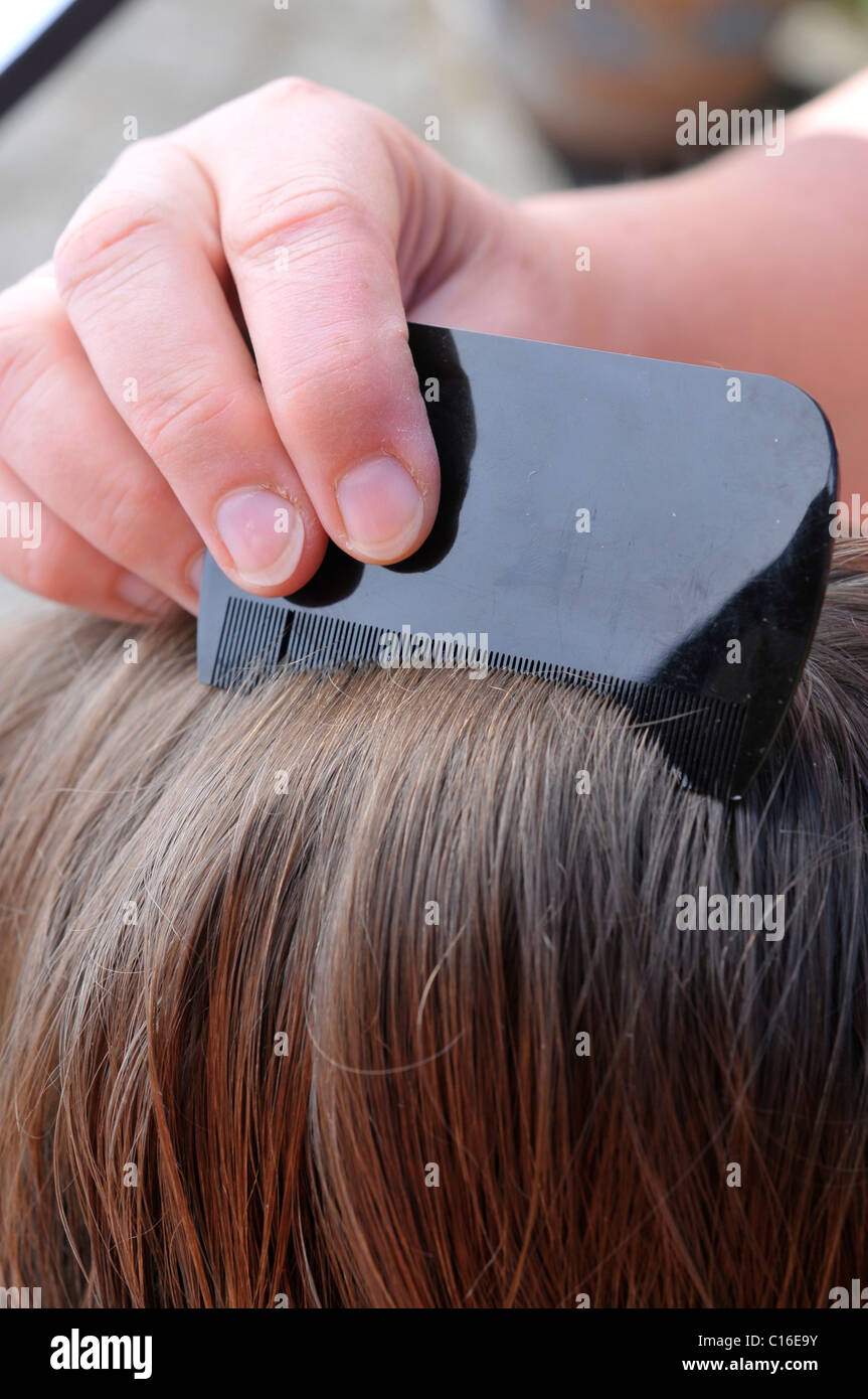 Essendo I Capelli Pettinati Con Un Piccolo A Denti Di Pettine In Cerca Di Pidocchi E Lendini Foto Stock Alamy