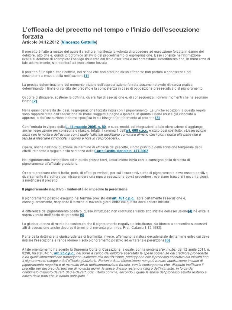 Efficacia Precetto Nel Tempo Inizio Esec Forzata