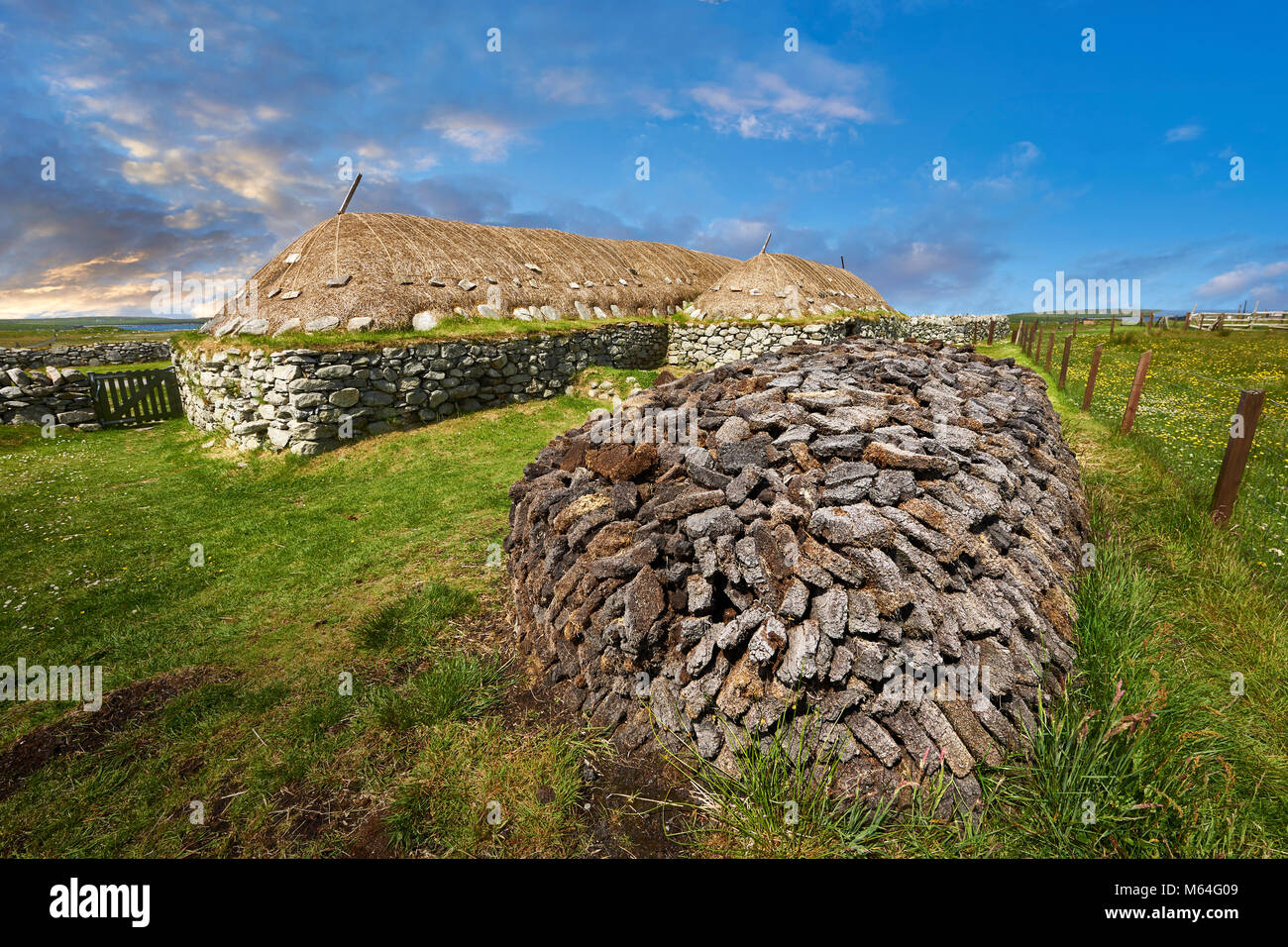 Foto E Immagini Pila Di Torba Oustide I Esterno Con Pareti In Pietra E Tetto Di Paglia Della Storica Blackhouse 24 Arnol Bragar Isola Di Lewis Scotlan Foto Stock Alamy