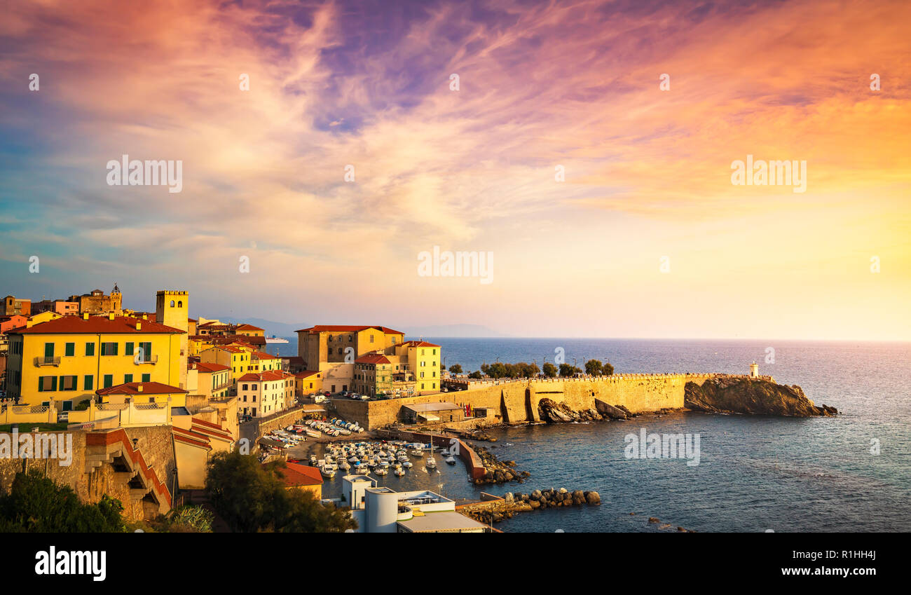 Piombino Tuscany Italy Ancient Fishing Port With The Citadel Stock Photo Alamy