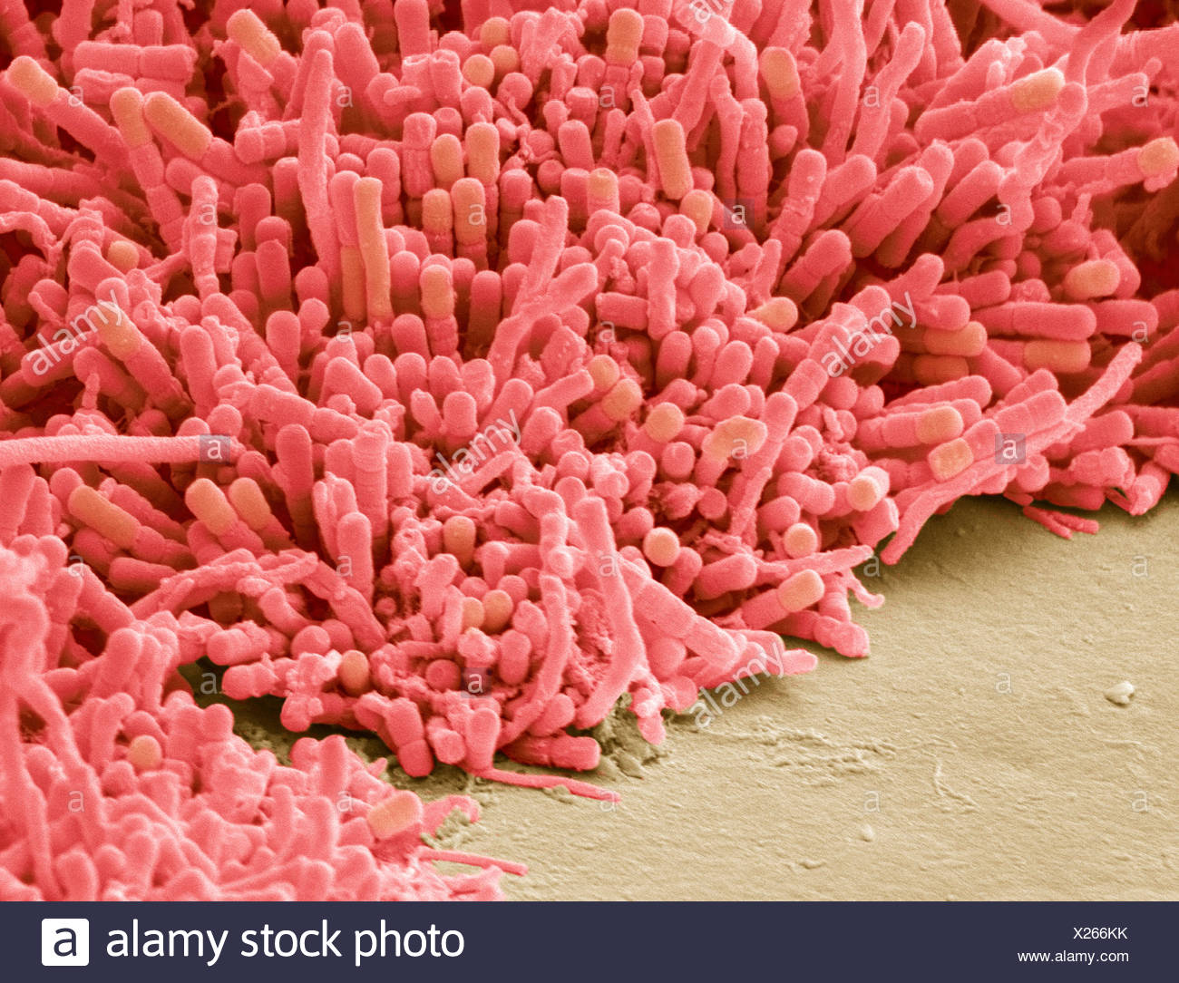 La Placca La Formazione Di Batteri Colorati Micrografia Scanningelectron Sem La Placca Dentale E Un Biofilm Di Batteri Che Si Forma Sui Denti Foto Stock Alamy