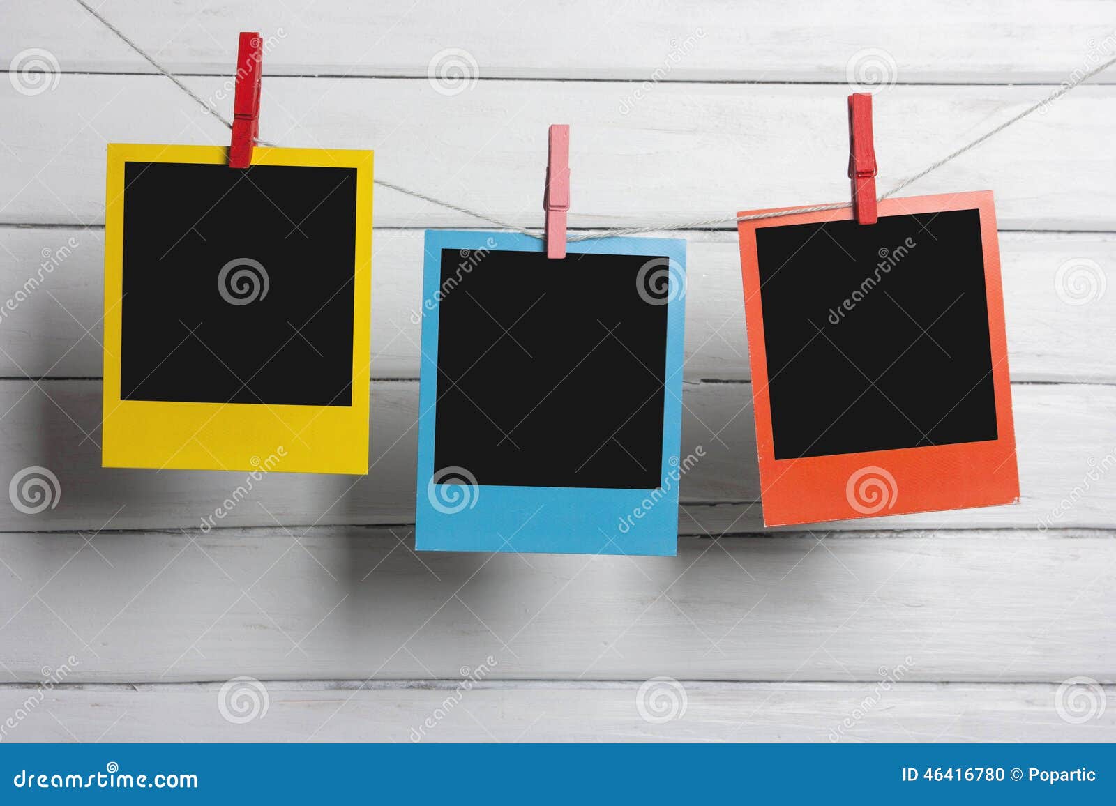 Polaroid Frames Hanging On Rope Image Gallery Concept Stock Photo Picture And Royalty Free Image Image 11601536
