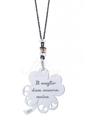 Collana Argento Charm Quadrifoglio Incisione Meglio Deve Ancora Venire
