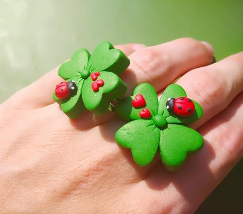 Anello Portafortuna Quadrifoglio Con Coccinella In Pasta Polimerica Fimo Amazon It Handmade