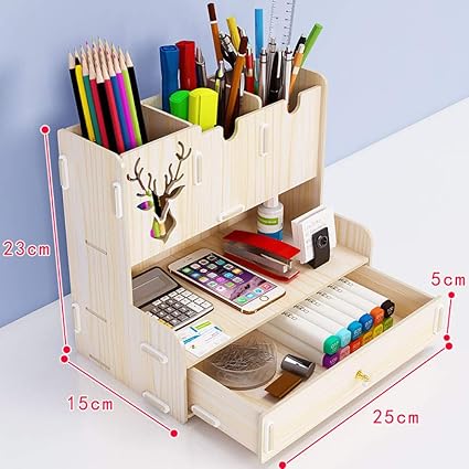 Yzertlh Organizzatore Da Scrivania In Legno Multifunzionale Armadio Fai Da Te Ordinato Per Scrivania Fisso Con 3 Portapenne 1 Cassetto Per Casa Ufficio E Scuola Whitemaple Amazon It Casa E Cucina