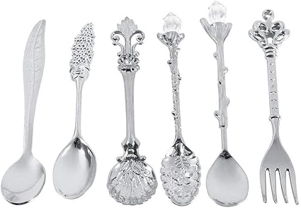 Set Di Posate 6pz Cucchiaio E Forchetta Retro Disegno In Lega Di Zinco Intagliato Caffe Gelato Dolce Frutta Oro Argento Ottone Rosso Ottone Antico Colore Silver Amazon It Casa E Cucina
